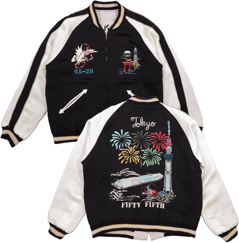 表面背中には2020年、現在の東京の景色をスカイツリーと花火、 隅田川クルーズ船と龍をデザイン。